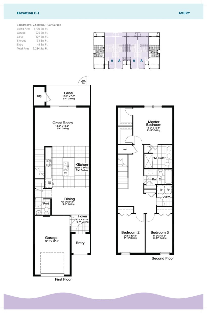 This 2-story home includes 3 bedrooms, 2.5 baths and an attached garage. As soon as you enter the front door, you are greeted by the large living room with a well-appointed kitchen and dining space leading out to the covered lanai. A powder room, storage closet on the lanai, and access to the garage are also on the first floor.