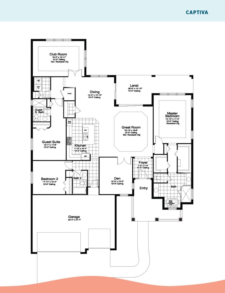 Captiva by Neal Communities is designed for entertaining, whether its family or friends. A spacious great room is open to the dining area and kitchen, where snacks and appetizers can be laid out on the island. The kitchen also holds a walk-in pantry to keep staples handy. Nice day or evening outside? Hang out on the covered lanai! When itβs time for fun and games, head to the club room to play foosball, pool or video games. When you have a stay-over guest, the guest suite with private bath will be appreciated. The other secondary bedroom is also convenient to a bath. At the end of the day, retreat to the spacious master suite, which includes a bedroom with recessed ceilings, two walk-in closets and master bath with two sink vanities, oval freestanding tub, shower and water closet. The home also features a den.
