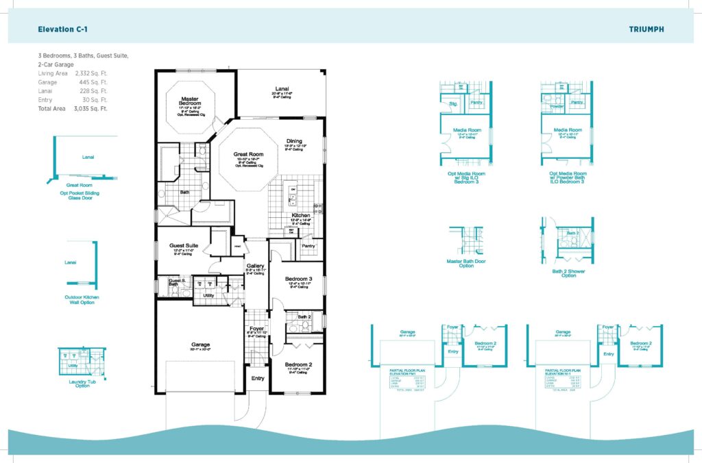The beautifully-designed kitchen features an island and a walk-in pantry for bringing five-star cuisine to life. Just off the charming great room, which includes an optional octagonal recessed ceiling, sliding glass doors take you to the covered lanai for outdoor relaxation.