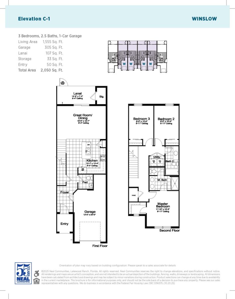 A new townhome design by award-winning Neal Communities. This 2-story home includes 3 bedrooms, 2.5 baths and an attached garage. As soon as you enter the front door into the foyer, you are greeted by a well-appointed kitchen and large great room / dining space leading out to the covered lanai. A powder room, storage closet on the lanai, and access to the garage are also on the first floor.