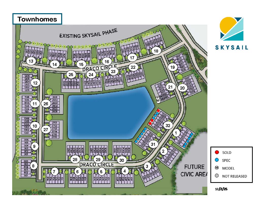 Townhome Series Site Plan – Available Homesites – 10/2/2025